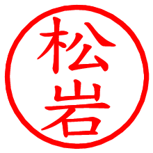 [朱肉の色]を選び、入力窓に“松岩”と入力して[生成]ボタンを押すと、印影が更新され、リンクから電子印鑑(デジタル印影)がダウンロードできます。 電子印鑑「松岩」の作り方文字表示が変なときや、文字バランスが悪いときは[字形切替]のチェックボックスでON/OFFを切り替え[生成]しなおしてください。 生成される画像は通常の印影「松岩.png」と、にじみを表現した少し太めの印影「松岩B.png」の背面透過PNG形式2種と、鮮明なPDF形式の印影「松岩.pdf」の計3種類です。 朱肉の微妙な色の違いを7色で表現しました。デフォルト(左端)は、JISが定めた朱肉の色のマンセル値(7.5R 5/14)をRGB値(217,66,54)に変換したものになっています。 「電子透かし」にチェックを入れて[生成]ボタンを押すと、タイムスタンプを透かしとして埋め込んだセキュアな電子印鑑が作れます。詳細は別ページの「電子透かしとタイムスタンプ」でご覧ください。  松岩さんの日付印が作れます。「日付スタンプメーカー」は、社内向けの書類に利用されることの多い日付印(データ印)が無料で作れるWebアプリケーションです。 中段に日付が入り、上段と下段は、ともに8文字まで文字が入ります。   古代文字で落款印が作れます。「落款スタンプメーカー」で作品を引き立たせる落款印が作れます。  なりきり書道 「落款スタンプメーカー」で作成した落款印の全体的な配置バランスの確認にご利用いただけます。デザインのワンポイントやラインスタンプ等にもお使いください。  遊び心ある松岩さんの角印はいかが? 絵文字が使えてLINEスタンプや年賀状にも使える消しゴムはんこ風の電子印鑑が作れます。  画像スタンプメーカーは、猫派の方はもちろん。犬派の方にもおすすめしたいペットなどのお気に入りの画像とかわいいタッチの文字が入るほっこりしたスタンプです。 マイスタンプメーカーとは法的な電子印鑑にはあたりませんので三文判的な位置付けでご利用ください。 | ||