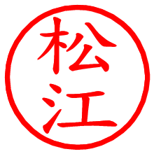[朱肉の色]を選び、入力窓に“松江”と入力して[生成]ボタンを押すと、印影が更新され、リンクから電子印鑑(デジタル印影)がダウンロードできます。 電子印鑑「松江」の作り方文字表示が変なときや、文字バランスが悪いときは[字形切替]のチェックボックスでON/OFFを切り替え[生成]しなおしてください。 生成される画像は通常の印影「松江.png」と、にじみを表現した少し太めの印影「松江B.png」の背面透過PNG形式2種と、鮮明なPDF形式の印影「松江.pdf」の計3種類です。 朱肉の微妙な色の違いを7色で表現しました。デフォルト(左端)は、JISが定めた朱肉の色のマンセル値(7.5R 5/14)をRGB値(217,66,54)に変換したものになっています。 「電子透かし」にチェックを入れて[生成]ボタンを押すと、タイムスタンプを透かしとして埋め込んだセキュアな電子印鑑が作れます。詳細は別ページの「電子透かしとタイムスタンプ」でご覧ください。 松江さんの日付印が作れます。「日付スタンプメーカー」は、社内向けの書類に利用されることの多い日付印(データ印)が無料で作れるWebアプリケーションです。中段に日付が入り、上段と下段は、ともに8文字まで文字が入ります。 ![]() 古代文字で落款印が作れます。「落款スタンプメーカー」で作品を引き立たせる落款印が作れます。