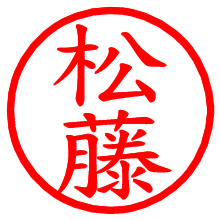 [朱肉の色]を選び、入力窓に“松藤”と入力して[生成]ボタンを押すと、印影が更新され、リンクから電子印鑑(デジタル印影)がダウンロードできます。 電子印鑑「松藤」の作り方文字表示が変なときや、文字バランスが悪いときは[字形切替]のチェックボックスでON/OFFを切り替え[生成]しなおしてください。 生成される画像は通常の印影「松藤.png」と、にじみを表現した少し太めの印影「松藤B.png」の背面透過PNG形式2種と、鮮明なPDF形式の印影「松藤.pdf」の計3種類です。 朱肉の微妙な色の違いを7色で表現しました。デフォルト(左端)は、JISが定めた朱肉の色のマンセル値(7.5R 5/14)をRGB値(217,66,54)に変換したものになっています。 「電子透かし」にチェックを入れて[生成]ボタンを押すと、タイムスタンプを透かしとして埋め込んだセキュアな電子印鑑が作れます。詳細は別ページの「電子透かしとタイムスタンプ」でご覧ください。 松藤さんの日付印が作れます。「日付スタンプメーカー」は、社内向けの書類に利用されることの多い日付印(データ印)が無料で作れるWebアプリケーションです。中段に日付が入り、上段と下段は、ともに8文字まで文字が入ります。 ![]() 古代文字で落款印が作れます。「落款スタンプメーカー」で作品を引き立たせる落款印が作れます。