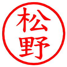 [朱肉の色]を選び、入力窓に“松野”と入力して[生成]ボタンを押すと、印影が更新され、リンクから電子印鑑(デジタル印影)がダウンロードできます。 電子印鑑「松野」の作り方文字表示が変なときや、文字バランスが悪いときは[字形切替]のチェックボックスでON/OFFを切り替え[生成]しなおしてください。 生成される画像は通常の印影「松野.png」と、にじみを表現した少し太めの印影「松野B.png」の背面透過PNG形式2種と、鮮明なPDF形式の印影「松野.pdf」の計3種類です。 朱肉の微妙な色の違いを7色で表現しました。デフォルト(左端)は、JISが定めた朱肉の色のマンセル値(7.5R 5/14)をRGB値(217,66,54)に変換したものになっています。 「電子透かし」にチェックを入れて[生成]ボタンを押すと、タイムスタンプを透かしとして埋め込んだセキュアな電子印鑑が作れます。詳細は別ページの「電子透かしとタイムスタンプ」でご覧ください。 松野さんの日付印が作れます。「日付スタンプメーカー」は、社内向けの書類に利用されることの多い日付印(データ印)が無料で作れるWebアプリケーションです。中段に日付が入り、上段と下段は、ともに8文字まで文字が入ります。 ![]() 古代文字で落款印が作れます。「落款スタンプメーカー」で作品を引き立たせる落款印が作れます。