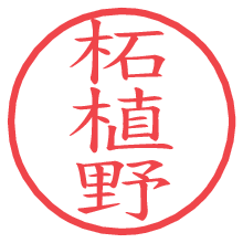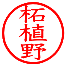 [朱肉の色]を選び、入力窓に“柘植野”と入力して[生成]ボタンを押すと、印影が更新され、リンクから電子印鑑(デジタル印影)がダウンロードできます。 電子印鑑「柘植野」の作り方文字表示が変なときや、文字バランスが悪いときは[字形切替]のチェックボックスでON/OFFを切り替え[生成]しなおしてください。 生成される画像は通常の印影「柘植野.png」と、にじみを表現した少し太めの印影「柘植野B.png」の背面透過PNG形式2種と、鮮明なPDF形式の印影「柘植野.pdf」の計3種類です。 朱肉の微妙な色の違いを7色で表現しました。デフォルト(左端)は、JISが定めた朱肉の色のマンセル値(7.5R 5/14)をRGB値(217,66,54)に変換したものになっています。 「電子透かし」にチェックを入れて[生成]ボタンを押すと、タイムスタンプを電子透かしとして埋め込んだセキュアな電子印鑑が作れます。詳細は別ページの「タイムスタンプと電子透かし」でご覧ください。 柘植野さんの日付印が作れます。「日付スタンプメーカー」は、社内向けの書類に利用されることの多い日付印(データ印)が無料で作れるWebアプリケーションです。中段に日付が入り、上段と下段は、ともに8文字まで文字が入ります。 ![]() 古代文字で落款印が作れます。「落款スタンプメーカー」で作品を引き立たせる落款印が作れます。