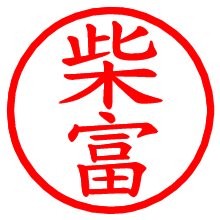 [朱肉の色]を選び、入力窓に“柴富”と入力して[生成]ボタンを押すと、印影が更新され、リンクから電子印鑑(デジタル印影)がダウンロードできます。 電子印鑑「柴富」の作り方文字表示が変なときや、文字バランスが悪いときは[字形切替]のチェックボックスでON/OFFを切り替え[生成]しなおしてください。 生成される画像は通常の印影「柴富.png」と、にじみを表現した少し太めの印影「柴富B.png」の背面透過PNG形式2種と、鮮明なPDF形式の印影「柴富.pdf」の計3種類です。 朱肉の微妙な色の違いを7色で表現しました。デフォルト(左端)は、JISが定めた朱肉の色のマンセル値(7.5R 5/14)をRGB値(217,66,54)に変換したものになっています。 「電子透かし」にチェックを入れて[生成]ボタンを押すと、タイムスタンプを電子透かしとして埋め込んだセキュアな電子印鑑が作れます。詳細は別ページの「タイムスタンプと電子透かし」でご覧ください。 柴富さんの日付印が作れます。「日付スタンプメーカー」は、社内向けの書類に利用されることの多い日付印(データ印)が無料で作れるWebアプリケーションです。中段に日付が入り、上段と下段は、ともに8文字まで文字が入ります。 ![]() 古代文字で落款印が作れます。「落款スタンプメーカー」で作品を引き立たせる落款印が作れます。
