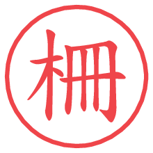 [朱肉の色]を選び、入力窓に“柵”と入力して[生成]ボタンを押すと、印影が更新され、リンクから電子印鑑(デジタル印影)がダウンロードできます。 電子印鑑「柵」の作り方文字表示が変なときや、文字バランスが悪いときは[字形切替]のチェックボックスでON/OFFを切り替え[生成]しなおしてください。 生成される画像は通常の印影「柵.png」と、にじみを表現した少し太めの印影「柵B.png」の背面透過PNG形式2種と、鮮明なPDF形式の印影「柵.pdf」の計3種類です。 朱肉の微妙な色の違いを7色で表現しました。デフォルト(左端)は、JISが定めた朱肉の色のマンセル値(7.5R 5/14)をRGB値(217,66,54)に変換したものになっています。 「電子透かし」にチェックを入れて[生成]ボタンを押すと、タイムスタンプを電子透かしとして埋め込んだセキュアな電子印鑑が作れます。詳細は別ページの「タイムスタンプと電子透かし」でご覧ください。 柵さんの日付印が作れます。「日付スタンプメーカー」は、社内向けの書類に利用されることの多い日付印(データ印)が無料で作れるWebアプリケーションです。中段に日付が入り、上段と下段は、ともに8文字まで文字が入ります。 ![]() 古代文字で落款印が作れます。「落款スタンプメーカー」で作品を引き立たせる落款印が作れます。