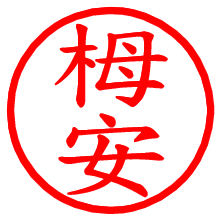 [朱肉の色]を選び、入力窓に“栂安”と入力して[生成]ボタンを押すと、印影が更新され、リンクから電子印鑑(デジタル印影)がダウンロードできます。 電子印鑑「栂安」の作り方文字表示が変なときや、文字バランスが悪いときは[字形切替]のチェックボックスでON/OFFを切り替え[生成]しなおしてください。 生成される画像は通常の印影「栂安.png」と、にじみを表現した少し太めの印影「栂安B.png」の背面透過PNG形式2種と、鮮明なPDF形式の印影「栂安.pdf」の計3種類です。 朱肉の微妙な色の違いを7色で表現しました。デフォルト(左端)は、JISが定めた朱肉の色のマンセル値(7.5R 5/14)をRGB値(217,66,54)に変換したものになっています。 「電子透かし」にチェックを入れて[生成]ボタンを押すと、タイムスタンプを電子透かしとして埋め込んだセキュアな電子印鑑が作れます。詳細は別ページの「タイムスタンプと電子透かし」でご覧ください。 栂安さんの日付印が作れます。「日付スタンプメーカー」は、社内向けの書類に利用されることの多い日付印(データ印)が無料で作れるWebアプリケーションです。中段に日付が入り、上段と下段は、ともに8文字まで文字が入ります。 ![]() 古代文字で落款印が作れます。「落款スタンプメーカー」で作品を引き立たせる落款印が作れます。