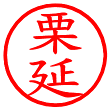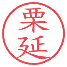 [朱肉の色]を選び、入力窓に“栗延”と入力して[生成]ボタンを押すと、印影が更新され、リンクから電子印鑑(デジタル印影)がダウンロードできます。 電子印鑑「栗延」の作り方文字表示が変なときや、文字バランスが悪いときは[字形切替]のチェックボックスでON/OFFを切り替え[生成]しなおしてください。 生成される画像は通常の印影「栗延.png」と、にじみを表現した少し太めの印影「栗延B.png」の背面透過PNG形式2種と、鮮明なPDF形式の印影「栗延.pdf」の計3種類です。 朱肉の微妙な色の違いを7色で表現しました。デフォルト(左端)は、JISが定めた朱肉の色のマンセル値(7.5R 5/14)をRGB値(217,66,54)に変換したものになっています。 「電子透かし」にチェックを入れて[生成]ボタンを押すと、タイムスタンプを電子透かしとして埋め込んだセキュアな電子印鑑が作れます。詳細は別ページの「タイムスタンプと電子透かし」でご覧ください。 栗延さんの日付印が作れます。「日付スタンプメーカー」は、社内向けの書類に利用されることの多い日付印(データ印)が無料で作れるWebアプリケーションです。中段に日付が入り、上段と下段は、ともに8文字まで文字が入ります。 ![]() 古代文字で落款印が作れます。「落款スタンプメーカー」で作品を引き立たせる落款印が作れます。