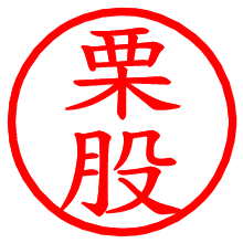 [朱肉の色]を選び、入力窓に“栗股”と入力して[生成]ボタンを押すと、印影が更新され、リンクから電子印鑑(デジタル印影)がダウンロードできます。 電子印鑑「栗股」の作り方文字表示が変なときや、文字バランスが悪いときは[字形切替]のチェックボックスでON/OFFを切り替え[生成]しなおしてください。 生成される画像は通常の印影「栗股.png」と、にじみを表現した少し太めの印影「栗股B.png」の背面透過PNG形式2種と、鮮明なPDF形式の印影「栗股.pdf」の計3種類です。 朱肉の微妙な色の違いを7色で表現しました。デフォルト(左端)は、JISが定めた朱肉の色のマンセル値(7.5R 5/14)をRGB値(217,66,54)に変換したものになっています。 「電子透かし」にチェックを入れて[生成]ボタンを押すと、タイムスタンプを電子透かしとして埋め込んだセキュアな電子印鑑が作れます。詳細は別ページの「タイムスタンプと電子透かし」でご覧ください。 栗股さんの日付印が作れます。「日付スタンプメーカー」は、社内向けの書類に利用されることの多い日付印(データ印)が無料で作れるWebアプリケーションです。中段に日付が入り、上段と下段は、ともに8文字まで文字が入ります。 ![]() 古代文字で落款印が作れます。「落款スタンプメーカー」で作品を引き立たせる落款印が作れます。