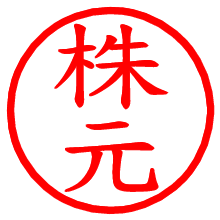 [朱肉の色]を選び、入力窓に“株元”と入力して[生成]ボタンを押すと、印影が更新され、リンクから電子印鑑(デジタル印影)がダウンロードできます。 電子印鑑「株元」の作り方文字表示が変なときや、文字バランスが悪いときは[字形切替]のチェックボックスでON/OFFを切り替え[生成]しなおしてください。 生成される画像は通常の印影「株元.png」と、にじみを表現した少し太めの印影「株元B.png」の背面透過PNG形式2種と、鮮明なPDF形式の印影「株元.pdf」の計3種類です。 朱肉の微妙な色の違いを7色で表現しました。デフォルト(左端)は、JISが定めた朱肉の色のマンセル値(7.5R 5/14)をRGB値(217,66,54)に変換したものになっています。 「電子透かし」にチェックを入れて[生成]ボタンを押すと、タイムスタンプを電子透かしとして埋め込んだセキュアな電子印鑑が作れます。詳細は別ページの「タイムスタンプと電子透かし」でご覧ください。 株元さんの日付印が作れます。「日付スタンプメーカー」は、社内向けの書類に利用されることの多い日付印(データ印)が無料で作れるWebアプリケーションです。中段に日付が入り、上段と下段は、ともに8文字まで文字が入ります。 ![]() 古代文字で落款印が作れます。「落款スタンプメーカー」で作品を引き立たせる落款印が作れます。
