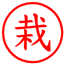 [朱肉の色]を選び、入力窓に“栽”と入力して[生成]ボタンを押すと、印影が更新され、リンクから電子印鑑(デジタル印影)がダウンロードできます。 電子印鑑「栽」の作り方文字表示が変なときや、文字バランスが悪いときは[字形切替]のチェックボックスでON/OFFを切り替え[生成]しなおしてください。 生成される画像は通常の印影「栽.png」と、にじみを表現した少し太めの印影「栽B.png」の背面透過PNG形式2種と、鮮明なPDF形式の印影「栽.pdf」の計3種類です。 朱肉の微妙な色の違いを7色で表現しました。デフォルト(左端)は、JISが定めた朱肉の色のマンセル値(7.5R 5/14)をRGB値(217,66,54)に変換したものになっています。 「電子透かし」にチェックを入れて[生成]ボタンを押すと、タイムスタンプを電子透かしとして埋め込んだセキュアな電子印鑑が作れます。詳細は別ページの「タイムスタンプと電子透かし」でご覧ください。 栽さんの日付印が作れます。「日付スタンプメーカー」は、社内向けの書類に利用されることの多い日付印(データ印)が無料で作れるWebアプリケーションです。中段に日付が入り、上段と下段は、ともに8文字まで文字が入ります。 ![]() 古代文字で落款印が作れます。「落款スタンプメーカー」で作品を引き立たせる落款印が作れます。