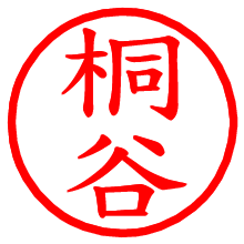 [朱肉の色]を選び、入力窓に“桐谷”と入力して[生成]ボタンを押すと、印影が更新され、リンクから電子印鑑(デジタル印影)がダウンロードできます。 電子印鑑「桐谷」の作り方文字表示が変なときや、文字バランスが悪いときは[字形切替]のチェックボックスでON/OFFを切り替え[生成]しなおしてください。 生成される画像は通常の印影「桐谷.png」と、にじみを表現した少し太めの印影「桐谷B.png」の背面透過PNG形式2種と、鮮明なPDF形式の印影「桐谷.pdf」の計3種類です。 朱肉の微妙な色の違いを7色で表現しました。デフォルト(左端)は、JISが定めた朱肉の色のマンセル値(7.5R 5/14)をRGB値(217,66,54)に変換したものになっています。 「電子透かし」にチェックを入れて[生成]ボタンを押すと、タイムスタンプを透かしとして埋め込んだセキュアな電子印鑑が作れます。詳細は別ページの「電子透かしとタイムスタンプ」でご覧ください。 桐谷さんの日付印が作れます。「日付スタンプメーカー」は、社内向けの書類に利用されることの多い日付印(データ印)が無料で作れるWebアプリケーションです。中段に日付が入り、上段と下段は、ともに8文字まで文字が入ります。 ![]() 古代文字で落款印が作れます。「落款スタンプメーカー」で作品を引き立たせる落款印が作れます。