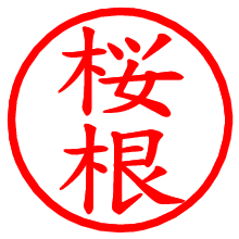 [朱肉の色]を選び、入力窓に“桜根”と入力して[生成]ボタンを押すと、印影が更新され、リンクから電子印鑑(デジタル印影)がダウンロードできます。 電子印鑑「桜根」の作り方文字表示が変なときや、文字バランスが悪いときは[字形切替]のチェックボックスでON/OFFを切り替え[生成]しなおしてください。 生成される画像は通常の印影「桜根.png」と、にじみを表現した少し太めの印影「桜根B.png」の背面透過PNG形式2種と、鮮明なPDF形式の印影「桜根.pdf」の計3種類です。 朱肉の微妙な色の違いを7色で表現しました。デフォルト(左端)は、JISが定めた朱肉の色のマンセル値(7.5R 5/14)をRGB値(217,66,54)に変換したものになっています。 「電子透かし」にチェックを入れて[生成]ボタンを押すと、タイムスタンプを電子透かしとして埋め込んだセキュアな電子印鑑が作れます。詳細は別ページの「タイムスタンプと電子透かし」でご覧ください。 桜根さんの日付印が作れます。「日付スタンプメーカー」は、社内向けの書類に利用されることの多い日付印(データ印)が無料で作れるWebアプリケーションです。中段に日付が入り、上段と下段は、ともに8文字まで文字が入ります。 ![]() 古代文字で落款印が作れます。「落款スタンプメーカー」で作品を引き立たせる落款印が作れます。