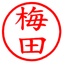 [朱肉の色]を選び、入力窓に“梅田”と入力して[生成]ボタンを押すと、印影が更新され、リンクから電子印鑑(デジタル印影)がダウンロードできます。 電子印鑑「梅田」の作り方文字表示が変なときや、文字バランスが悪いときは[字形切替]のチェックボックスでON/OFFを切り替え[生成]しなおしてください。 生成される画像は通常の印影「梅田.png」と、にじみを表現した少し太めの印影「梅田B.png」の背面透過PNG形式2種と、鮮明なPDF形式の印影「梅田.pdf」の計3種類です。 朱肉の微妙な色の違いを7色で表現しました。デフォルト(左端)は、JISが定めた朱肉の色のマンセル値(7.5R 5/14)をRGB値(217,66,54)に変換したものになっています。 「電子透かし」にチェックを入れて[生成]ボタンを押すと、タイムスタンプを透かしとして埋め込んだセキュアな電子印鑑が作れます。詳細は別ページの「電子透かしとタイムスタンプ」でご覧ください。 梅田さんの日付印が作れます。「日付スタンプメーカー」は、社内向けの書類に利用されることの多い日付印(データ印)が無料で作れるWebアプリケーションです。中段に日付が入り、上段と下段は、ともに8文字まで文字が入ります。 ![]() 古代文字で落款印が作れます。「落款スタンプメーカー」で作品を引き立たせる落款印が作れます。