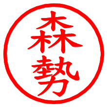 [朱肉の色]を選び、入力窓に“森勢”と入力して[生成]ボタンを押すと、印影が更新され、リンクから電子印鑑(デジタル印影)がダウンロードできます。 電子印鑑「森勢」の作り方文字表示が変なときや、文字バランスが悪いときは[字形切替]のチェックボックスでON/OFFを切り替え[生成]しなおしてください。 生成される画像は通常の印影「森勢.png」と、にじみを表現した少し太めの印影「森勢B.png」の背面透過PNG形式2種と、鮮明なPDF形式の印影「森勢.pdf」の計3種類です。 朱肉の微妙な色の違いを7色で表現しました。デフォルト(左端)は、JISが定めた朱肉の色のマンセル値(7.5R 5/14)をRGB値(217,66,54)に変換したものになっています。 「電子透かし」にチェックを入れて[生成]ボタンを押すと、タイムスタンプを電子透かしとして埋め込んだセキュアな電子印鑑が作れます。詳細は別ページの「タイムスタンプと電子透かし」でご覧ください。 森勢さんの日付印が作れます。「日付スタンプメーカー」は、社内向けの書類に利用されることの多い日付印(データ印)が無料で作れるWebアプリケーションです。中段に日付が入り、上段と下段は、ともに8文字まで文字が入ります。 ![]() 古代文字で落款印が作れます。「落款スタンプメーカー」で作品を引き立たせる落款印が作れます。