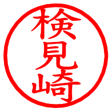 [朱肉の色]を選び、入力窓に“検見崎”と入力して[生成]ボタンを押すと、印影が更新され、リンクから電子印鑑(デジタル印影)がダウンロードできます。 電子印鑑「検見崎」の作り方文字表示が変なときや、文字バランスが悪いときは[字形切替]のチェックボックスでON/OFFを切り替え[生成]しなおしてください。 生成される画像は通常の印影「検見崎.png」と、にじみを表現した少し太めの印影「検見崎B.png」の背面透過PNG形式2種と、鮮明なPDF形式の印影「検見崎.pdf」の計3種類です。 朱肉の微妙な色の違いを7色で表現しました。デフォルト(左端)は、JISが定めた朱肉の色のマンセル値(7.5R 5/14)をRGB値(217,66,54)に変換したものになっています。 「電子透かし」にチェックを入れて[生成]ボタンを押すと、タイムスタンプを透かしとして埋め込んだセキュアな電子印鑑が作れます。詳細は別ページの「電子透かしとタイムスタンプ」でご覧ください。 検見崎さんの日付印が作れます。「日付スタンプメーカー」は、社内向けの書類に利用されることの多い日付印(データ印)が無料で作れるWebアプリケーションです。中段に日付が入り、上段と下段は、ともに8文字まで文字が入ります。 ![]() 古代文字で落款印が作れます。「落款スタンプメーカー」で作品を引き立たせる落款印が作れます。