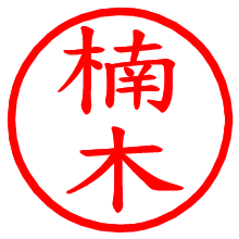 [朱肉の色]を選び、入力窓に“楠木”と入力して[生成]ボタンを押すと、印影が更新され、リンクから電子印鑑(デジタル印影)がダウンロードできます。 電子印鑑「楠木」の作り方文字表示が変なときや、文字バランスが悪いときは[字形切替]のチェックボックスでON/OFFを切り替え[生成]しなおしてください。 生成される画像は通常の印影「楠木.png」と、にじみを表現した少し太めの印影「楠木B.png」の背面透過PNG形式2種と、鮮明なPDF形式の印影「楠木.pdf」の計3種類です。 朱肉の微妙な色の違いを7色で表現しました。デフォルト(左端)は、JISが定めた朱肉の色のマンセル値(7.5R 5/14)をRGB値(217,66,54)に変換したものになっています。 「電子透かし」にチェックを入れて[生成]ボタンを押すと、タイムスタンプを透かしとして埋め込んだセキュアな電子印鑑が作れます。詳細は別ページの「電子透かしとタイムスタンプ」でご覧ください。 楠木さんの日付印が作れます。「日付スタンプメーカー」は、社内向けの書類に利用されることの多い日付印(データ印)が無料で作れるWebアプリケーションです。中段に日付が入り、上段と下段は、ともに8文字まで文字が入ります。 ![]() 古代文字で落款印が作れます。「落款スタンプメーカー」で作品を引き立たせる落款印が作れます。