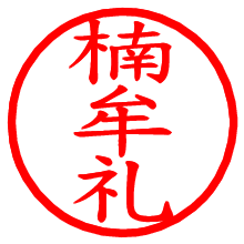 [朱肉の色]を選び、入力窓に“楠牟礼”と入力して[生成]ボタンを押すと、印影が更新され、リンクから電子印鑑(デジタル印影)がダウンロードできます。 電子印鑑「楠牟礼」の作り方文字表示が変なときや、文字バランスが悪いときは[字形切替]のチェックボックスでON/OFFを切り替え[生成]しなおしてください。 生成される画像は通常の印影「楠牟礼.png」と、にじみを表現した少し太めの印影「楠牟礼B.png」の背面透過PNG形式2種と、鮮明なPDF形式の印影「楠牟礼.pdf」の計3種類です。 朱肉の微妙な色の違いを7色で表現しました。デフォルト(左端)は、JISが定めた朱肉の色のマンセル値(7.5R 5/14)をRGB値(217,66,54)に変換したものになっています。 「電子透かし」にチェックを入れて[生成]ボタンを押すと、タイムスタンプを電子透かしとして埋め込んだセキュアな電子印鑑が作れます。詳細は別ページの「タイムスタンプと電子透かし」でご覧ください。 楠牟礼さんの日付印が作れます。「日付スタンプメーカー」は、社内向けの書類に利用されることの多い日付印(データ印)が無料で作れるWebアプリケーションです。中段に日付が入り、上段と下段は、ともに8文字まで文字が入ります。 ![]() 古代文字で落款印が作れます。「落款スタンプメーカー」で作品を引き立たせる落款印が作れます。