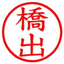 [朱肉の色]を選び、入力窓に“橋出”と入力して[生成]ボタンを押すと、印影が更新され、リンクから電子印鑑(デジタル印影)がダウンロードできます。 電子印鑑「橋出」の作り方文字表示が変なときや、文字バランスが悪いときは[字形切替]のチェックボックスでON/OFFを切り替え[生成]しなおしてください。 生成される画像は通常の印影「橋出.png」と、にじみを表現した少し太めの印影「橋出B.png」の背面透過PNG形式2種と、鮮明なPDF形式の印影「橋出.pdf」の計3種類です。 朱肉の微妙な色の違いを7色で表現しました。デフォルト(左端)は、JISが定めた朱肉の色のマンセル値(7.5R 5/14)をRGB値(217,66,54)に変換したものになっています。 「電子透かし」にチェックを入れて[生成]ボタンを押すと、タイムスタンプを電子透かしとして埋め込んだセキュアな電子印鑑が作れます。詳細は別ページの「タイムスタンプと電子透かし」でご覧ください。 橋出さんの日付印が作れます。「日付スタンプメーカー」は、社内向けの書類に利用されることの多い日付印(データ印)が無料で作れるWebアプリケーションです。中段に日付が入り、上段と下段は、ともに8文字まで文字が入ります。 ![]() 古代文字で落款印が作れます。「落款スタンプメーカー」で作品を引き立たせる落款印が作れます。
