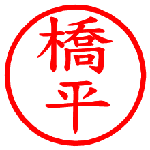 [朱肉の色]を選び、入力窓に“橋平”と入力して[生成]ボタンを押すと、印影が更新され、リンクから電子印鑑(デジタル印影)がダウンロードできます。 電子印鑑「橋平」の作り方文字表示が変なときや、文字バランスが悪いときは[字形切替]のチェックボックスでON/OFFを切り替え[生成]しなおしてください。 生成される画像は通常の印影「橋平.png」と、にじみを表現した少し太めの印影「橋平B.png」の背面透過PNG形式2種と、鮮明なPDF形式の印影「橋平.pdf」の計3種類です。 朱肉の微妙な色の違いを7色で表現しました。デフォルト(左端)は、JISが定めた朱肉の色のマンセル値(7.5R 5/14)をRGB値(217,66,54)に変換したものになっています。 「電子透かし」にチェックを入れて[生成]ボタンを押すと、タイムスタンプを電子透かしとして埋め込んだセキュアな電子印鑑が作れます。詳細は別ページの「タイムスタンプと電子透かし」でご覧ください。 橋平さんの日付印が作れます。「日付スタンプメーカー」は、社内向けの書類に利用されることの多い日付印(データ印)が無料で作れるWebアプリケーションです。中段に日付が入り、上段と下段は、ともに8文字まで文字が入ります。 ![]() 古代文字で落款印が作れます。「落款スタンプメーカー」で作品を引き立たせる落款印が作れます。
