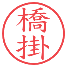 [朱肉の色]を選び、入力窓に“橋掛”と入力して[生成]ボタンを押すと、印影が更新され、リンクから電子印鑑(デジタル印影)がダウンロードできます。 電子印鑑「橋掛」の作り方文字表示が変なときや、文字バランスが悪いときは[字形切替]のチェックボックスでON/OFFを切り替え[生成]しなおしてください。 生成される画像は通常の印影「橋掛.png」と、にじみを表現した少し太めの印影「橋掛B.png」の背面透過PNG形式2種と、鮮明なPDF形式の印影「橋掛.pdf」の計3種類です。 朱肉の微妙な色の違いを7色で表現しました。デフォルト(左端)は、JISが定めた朱肉の色のマンセル値(7.5R 5/14)をRGB値(217,66,54)に変換したものになっています。 「電子透かし」にチェックを入れて[生成]ボタンを押すと、タイムスタンプを電子透かしとして埋め込んだセキュアな電子印鑑が作れます。詳細は別ページの「タイムスタンプと電子透かし」でご覧ください。 橋掛さんの日付印が作れます。「日付スタンプメーカー」は、社内向けの書類に利用されることの多い日付印(データ印)が無料で作れるWebアプリケーションです。中段に日付が入り、上段と下段は、ともに8文字まで文字が入ります。 ![]() 古代文字で落款印が作れます。「落款スタンプメーカー」で作品を引き立たせる落款印が作れます。
