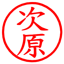 [朱肉の色]を選び、入力窓に“次原”と入力して[生成]ボタンを押すと、印影が更新され、リンクから電子印鑑(デジタル印影)がダウンロードできます。 電子印鑑「次原」の作り方文字表示が変なときや、文字バランスが悪いときは[字形切替]のチェックボックスでON/OFFを切り替え[生成]しなおしてください。 生成される画像は通常の印影「次原.png」と、にじみを表現した少し太めの印影「次原B.png」の背面透過PNG形式2種と、鮮明なPDF形式の印影「次原.pdf」の計3種類です。 朱肉の微妙な色の違いを7色で表現しました。デフォルト(左端)は、JISが定めた朱肉の色のマンセル値(7.5R 5/14)をRGB値(217,66,54)に変換したものになっています。 「電子透かし」にチェックを入れて[生成]ボタンを押すと、タイムスタンプを電子透かしとして埋め込んだセキュアな電子印鑑が作れます。詳細は別ページの「タイムスタンプと電子透かし」でご覧ください。 次原さんの日付印が作れます。「日付スタンプメーカー」は、社内向けの書類に利用されることの多い日付印(データ印)が無料で作れるWebアプリケーションです。中段に日付が入り、上段と下段は、ともに8文字まで文字が入ります。 ![]() 古代文字で落款印が作れます。「落款スタンプメーカー」で作品を引き立たせる落款印が作れます。