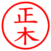 [朱肉の色]を選び、入力窓に“正木”と入力して[生成]ボタンを押すと、印影が更新され、リンクから電子印鑑(デジタル印影)がダウンロードできます。 電子印鑑「正木」の作り方文字表示が変なときや、文字バランスが悪いときは[字形切替]のチェックボックスでON/OFFを切り替え[生成]しなおしてください。 生成される画像は通常の印影「正木.png」と、にじみを表現した少し太めの印影「正木B.png」の背面透過PNG形式2種と、鮮明なPDF形式の印影「正木.pdf」の計3種類です。 朱肉の微妙な色の違いを7色で表現しました。デフォルト(左端)は、JISが定めた朱肉の色のマンセル値(7.5R 5/14)をRGB値(217,66,54)に変換したものになっています。 「電子透かし」にチェックを入れて[生成]ボタンを押すと、タイムスタンプを透かしとして埋め込んだセキュアな電子印鑑が作れます。詳細は別ページの「電子透かしとタイムスタンプ」でご覧ください。 正木さんの日付印が作れます。「日付スタンプメーカー」は、社内向けの書類に利用されることの多い日付印(データ印)が無料で作れるWebアプリケーションです。中段に日付が入り、上段と下段は、ともに8文字まで文字が入ります。 ![]() 古代文字で落款印が作れます。「落款スタンプメーカー」で作品を引き立たせる落款印が作れます。