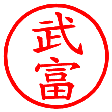 [朱肉の色]を選び、入力窓に“武富”と入力して[生成]ボタンを押すと、印影が更新され、リンクから電子印鑑(デジタル印影)がダウンロードできます。 電子印鑑「武富」の作り方文字表示が変なときや、文字バランスが悪いときは[字形切替]のチェックボックスでON/OFFを切り替え[生成]しなおしてください。 生成される画像は通常の印影「武富.png」と、にじみを表現した少し太めの印影「武富B.png」の背面透過PNG形式2種と、鮮明なPDF形式の印影「武富.pdf」の計3種類です。 朱肉の微妙な色の違いを7色で表現しました。デフォルト(左端)は、JISが定めた朱肉の色のマンセル値(7.5R 5/14)をRGB値(217,66,54)に変換したものになっています。 「電子透かし」にチェックを入れて[生成]ボタンを押すと、タイムスタンプを透かしとして埋め込んだセキュアな電子印鑑が作れます。詳細は別ページの「電子透かしとタイムスタンプ」でご覧ください。 武富さんの日付印が作れます。「日付スタンプメーカー」は、社内向けの書類に利用されることの多い日付印(データ印)が無料で作れるWebアプリケーションです。中段に日付が入り、上段と下段は、ともに8文字まで文字が入ります。 ![]() 古代文字で落款印が作れます。「落款スタンプメーカー」で作品を引き立たせる落款印が作れます。