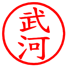 [朱肉の色]を選び、入力窓に“武河”と入力して[生成]ボタンを押すと、印影が更新され、リンクから電子印鑑(デジタル印影)がダウンロードできます。 電子印鑑「武河」の作り方文字表示が変なときや、文字バランスが悪いときは[字形切替]のチェックボックスでON/OFFを切り替え[生成]しなおしてください。 生成される画像は通常の印影「武河.png」と、にじみを表現した少し太めの印影「武河B.png」の背面透過PNG形式2種と、鮮明なPDF形式の印影「武河.pdf」の計3種類です。 朱肉の微妙な色の違いを7色で表現しました。デフォルト(左端)は、JISが定めた朱肉の色のマンセル値(7.5R 5/14)をRGB値(217,66,54)に変換したものになっています。 「電子透かし」にチェックを入れて[生成]ボタンを押すと、タイムスタンプを電子透かしとして埋め込んだセキュアな電子印鑑が作れます。詳細は別ページの「タイムスタンプと電子透かし」でご覧ください。 武河さんの日付印が作れます。「日付スタンプメーカー」は、社内向けの書類に利用されることの多い日付印(データ印)が無料で作れるWebアプリケーションです。中段に日付が入り、上段と下段は、ともに8文字まで文字が入ります。 ![]() 古代文字で落款印が作れます。「落款スタンプメーカー」で作品を引き立たせる落款印が作れます。