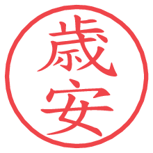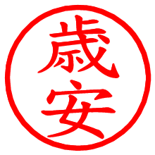 [朱肉の色]を選び、入力窓に“歳安”と入力して[生成]ボタンを押すと、印影が更新され、リンクから電子印鑑(デジタル印影)がダウンロードできます。 電子印鑑「歳安」の作り方文字表示が変なときや、文字バランスが悪いときは[字形切替]のチェックボックスでON/OFFを切り替え[生成]しなおしてください。 生成される画像は通常の印影「歳安.png」と、にじみを表現した少し太めの印影「歳安B.png」の背面透過PNG形式2種と、鮮明なPDF形式の印影「歳安.pdf」の計3種類です。 朱肉の微妙な色の違いを7色で表現しました。デフォルト(左端)は、JISが定めた朱肉の色のマンセル値(7.5R 5/14)をRGB値(217,66,54)に変換したものになっています。 「電子透かし」にチェックを入れて[生成]ボタンを押すと、タイムスタンプを電子透かしとして埋め込んだセキュアな電子印鑑が作れます。詳細は別ページの「タイムスタンプと電子透かし」でご覧ください。 歳安さんの日付印が作れます。「日付スタンプメーカー」は、社内向けの書類に利用されることの多い日付印(データ印)が無料で作れるWebアプリケーションです。中段に日付が入り、上段と下段は、ともに8文字まで文字が入ります。 ![]() 古代文字で落款印が作れます。「落款スタンプメーカー」で作品を引き立たせる落款印が作れます。