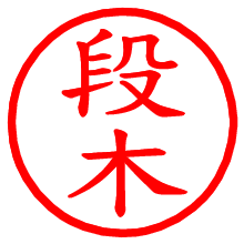 [朱肉の色]を選び、入力窓に“段木”と入力して[生成]ボタンを押すと、印影が更新され、リンクから電子印鑑(デジタル印影)がダウンロードできます。 電子印鑑「段木」の作り方文字表示が変なときや、文字バランスが悪いときは[字形切替]のチェックボックスでON/OFFを切り替え[生成]しなおしてください。 生成される画像は通常の印影「段木.png」と、にじみを表現した少し太めの印影「段木B.png」の背面透過PNG形式2種と、鮮明なPDF形式の印影「段木.pdf」の計3種類です。 朱肉の微妙な色の違いを7色で表現しました。デフォルト(左端)は、JISが定めた朱肉の色のマンセル値(7.5R 5/14)をRGB値(217,66,54)に変換したものになっています。 「電子透かし」にチェックを入れて[生成]ボタンを押すと、タイムスタンプを電子透かしとして埋め込んだセキュアな電子印鑑が作れます。詳細は別ページの「タイムスタンプと電子透かし」でご覧ください。 段木さんの日付印が作れます。「日付スタンプメーカー」は、社内向けの書類に利用されることの多い日付印(データ印)が無料で作れるWebアプリケーションです。中段に日付が入り、上段と下段は、ともに8文字まで文字が入ります。 ![]() 古代文字で落款印が作れます。「落款スタンプメーカー」で作品を引き立たせる落款印が作れます。