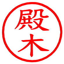 [朱肉の色]を選び、入力窓に“殿木”と入力して[生成]ボタンを押すと、印影が更新され、リンクから電子印鑑(デジタル印影)がダウンロードできます。 電子印鑑「殿木」の作り方文字表示が変なときや、文字バランスが悪いときは[字形切替]のチェックボックスでON/OFFを切り替え[生成]しなおしてください。 生成される画像は通常の印影「殿木.png」と、にじみを表現した少し太めの印影「殿木B.png」の背面透過PNG形式2種と、鮮明なPDF形式の印影「殿木.pdf」の計3種類です。 朱肉の微妙な色の違いを7色で表現しました。デフォルト(左端)は、JISが定めた朱肉の色のマンセル値(7.5R 5/14)をRGB値(217,66,54)に変換したものになっています。 「電子透かし」にチェックを入れて[生成]ボタンを押すと、タイムスタンプを透かしとして埋め込んだセキュアな電子印鑑が作れます。詳細は別ページの「電子透かしとタイムスタンプ」でご覧ください。 殿木さんの日付印が作れます。「日付スタンプメーカー」は、社内向けの書類に利用されることの多い日付印(データ印)が無料で作れるWebアプリケーションです。中段に日付が入り、上段と下段は、ともに8文字まで文字が入ります。 ![]() 古代文字で落款印が作れます。「落款スタンプメーカー」で作品を引き立たせる落款印が作れます。