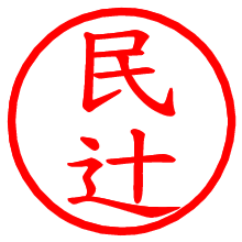[朱肉の色]を選び、入力窓に“民辻”と入力して[生成]ボタンを押すと、印影が更新され、リンクから電子印鑑(デジタル印影)がダウンロードできます。 電子印鑑「民辻」の作り方文字表示が変なときや、文字バランスが悪いときは[字形切替]のチェックボックスでON/OFFを切り替え[生成]しなおしてください。 生成される画像は通常の印影「民辻.png」と、にじみを表現した少し太めの印影「民辻B.png」の背面透過PNG形式2種と、鮮明なPDF形式の印影「民辻.pdf」の計3種類です。 朱肉の微妙な色の違いを7色で表現しました。デフォルト(左端)は、JISが定めた朱肉の色のマンセル値(7.5R 5/14)をRGB値(217,66,54)に変換したものになっています。 「電子透かし」にチェックを入れて[生成]ボタンを押すと、タイムスタンプを電子透かしとして埋め込んだセキュアな電子印鑑が作れます。詳細は別ページの「タイムスタンプと電子透かし」でご覧ください。 民辻さんの日付印が作れます。「日付スタンプメーカー」は、社内向けの書類に利用されることの多い日付印(データ印)が無料で作れるWebアプリケーションです。中段に日付が入り、上段と下段は、ともに8文字まで文字が入ります。 ![]() 古代文字で落款印が作れます。「落款スタンプメーカー」で作品を引き立たせる落款印が作れます。