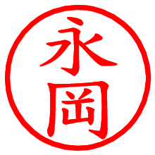[朱肉の色]を選び、入力窓に“永岡”と入力して[生成]ボタンを押すと、印影が更新され、リンクから電子印鑑(デジタル印影)がダウンロードできます。 電子印鑑「永岡」の作り方文字表示が変なときや、文字バランスが悪いときは[字形切替]のチェックボックスでON/OFFを切り替え[生成]しなおしてください。 生成される画像は通常の印影「永岡.png」と、にじみを表現した少し太めの印影「永岡B.png」の背面透過PNG形式2種と、鮮明なPDF形式の印影「永岡.pdf」の計3種類です。 朱肉の微妙な色の違いを7色で表現しました。デフォルト(左端)は、JISが定めた朱肉の色のマンセル値(7.5R 5/14)をRGB値(217,66,54)に変換したものになっています。 「電子透かし」にチェックを入れて[生成]ボタンを押すと、タイムスタンプを透かしとして埋め込んだセキュアな電子印鑑が作れます。詳細は別ページの「電子透かしとタイムスタンプ」でご覧ください。 永岡さんの日付印が作れます。「日付スタンプメーカー」は、社内向けの書類に利用されることの多い日付印(データ印)が無料で作れるWebアプリケーションです。中段に日付が入り、上段と下段は、ともに8文字まで文字が入ります。 ![]() 古代文字で落款印が作れます。「落款スタンプメーカー」で作品を引き立たせる落款印が作れます。