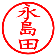[朱肉の色]を選び、入力窓に“永島田”と入力して[生成]ボタンを押すと、印影が更新され、リンクから電子印鑑(デジタル印影)がダウンロードできます。 電子印鑑「永島田」の作り方文字表示が変なときや、文字バランスが悪いときは[字形切替]のチェックボックスでON/OFFを切り替え[生成]しなおしてください。 生成される画像は通常の印影「永島田.png」と、にじみを表現した少し太めの印影「永島田B.png」の背面透過PNG形式2種と、鮮明なPDF形式の印影「永島田.pdf」の計3種類です。 朱肉の微妙な色の違いを7色で表現しました。デフォルト(左端)は、JISが定めた朱肉の色のマンセル値(7.5R 5/14)をRGB値(217,66,54)に変換したものになっています。 「電子透かし」にチェックを入れて[生成]ボタンを押すと、タイムスタンプを電子透かしとして埋め込んだセキュアな電子印鑑が作れます。詳細は別ページの「タイムスタンプと電子透かし」でご覧ください。 永島田さんの日付印が作れます。「日付スタンプメーカー」は、社内向けの書類に利用されることの多い日付印(データ印)が無料で作れるWebアプリケーションです。中段に日付が入り、上段と下段は、ともに8文字まで文字が入ります。 ![]() 古代文字で落款印が作れます。「落款スタンプメーカー」で作品を引き立たせる落款印が作れます。