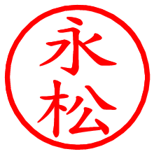 [朱肉の色]を選び、入力窓に“永松”と入力して[生成]ボタンを押すと、印影が更新され、リンクから電子印鑑(デジタル印影)がダウンロードできます。 電子印鑑「永松」の作り方文字表示が変なときや、文字バランスが悪いときは[字形切替]のチェックボックスでON/OFFを切り替え[生成]しなおしてください。 生成される画像は通常の印影「永松.png」と、にじみを表現した少し太めの印影「永松B.png」の背面透過PNG形式2種と、鮮明なPDF形式の印影「永松.pdf」の計3種類です。 朱肉の微妙な色の違いを7色で表現しました。デフォルト(左端)は、JISが定めた朱肉の色のマンセル値(7.5R 5/14)をRGB値(217,66,54)に変換したものになっています。 「電子透かし」にチェックを入れて[生成]ボタンを押すと、タイムスタンプを透かしとして埋め込んだセキュアな電子印鑑が作れます。詳細は別ページの「電子透かしとタイムスタンプ」でご覧ください。 永松さんの日付印が作れます。「日付スタンプメーカー」は、社内向けの書類に利用されることの多い日付印(データ印)が無料で作れるWebアプリケーションです。中段に日付が入り、上段と下段は、ともに8文字まで文字が入ります。 ![]() 古代文字で落款印が作れます。「落款スタンプメーカー」で作品を引き立たせる落款印が作れます。