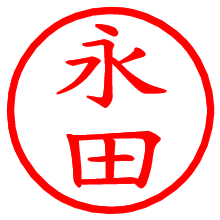 [朱肉の色]を選び、入力窓に“永田”と入力して[生成]ボタンを押すと、印影が更新され、リンクから電子印鑑(デジタル印影)がダウンロードできます。 電子印鑑「永田」の作り方文字表示が変なときや、文字バランスが悪いときは[字形切替]のチェックボックスでON/OFFを切り替え[生成]しなおしてください。 生成される画像は通常の印影「永田.png」と、にじみを表現した少し太めの印影「永田B.png」の背面透過PNG形式2種と、鮮明なPDF形式の印影「永田.pdf」の計3種類です。 朱肉の微妙な色の違いを7色で表現しました。デフォルト(左端)は、JISが定めた朱肉の色のマンセル値(7.5R 5/14)をRGB値(217,66,54)に変換したものになっています。 「電子透かし」にチェックを入れて[生成]ボタンを押すと、タイムスタンプを透かしとして埋め込んだセキュアな電子印鑑が作れます。詳細は別ページの「電子透かしとタイムスタンプ」でご覧ください。 永田さんの日付印が作れます。「日付スタンプメーカー」は、社内向けの書類に利用されることの多い日付印(データ印)が無料で作れるWebアプリケーションです。中段に日付が入り、上段と下段は、ともに8文字まで文字が入ります。 ![]() 古代文字で落款印が作れます。「落款スタンプメーカー」で作品を引き立たせる落款印が作れます。