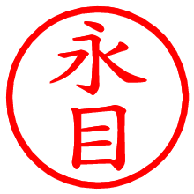 [朱肉の色]を選び、入力窓に“永目”と入力して[生成]ボタンを押すと、印影が更新され、リンクから電子印鑑(デジタル印影)がダウンロードできます。 電子印鑑「永目」の作り方文字表示が変なときや、文字バランスが悪いときは[字形切替]のチェックボックスでON/OFFを切り替え[生成]しなおしてください。 生成される画像は通常の印影「永目.png」と、にじみを表現した少し太めの印影「永目B.png」の背面透過PNG形式2種と、鮮明なPDF形式の印影「永目.pdf」の計3種類です。 朱肉の微妙な色の違いを7色で表現しました。デフォルト(左端)は、JISが定めた朱肉の色のマンセル値(7.5R 5/14)をRGB値(217,66,54)に変換したものになっています。 「電子透かし」にチェックを入れて[生成]ボタンを押すと、タイムスタンプを透かしとして埋め込んだセキュアな電子印鑑が作れます。詳細は別ページの「電子透かしとタイムスタンプ」でご覧ください。 永目さんの日付印が作れます。「日付スタンプメーカー」は、社内向けの書類に利用されることの多い日付印(データ印)が無料で作れるWebアプリケーションです。中段に日付が入り、上段と下段は、ともに8文字まで文字が入ります。 ![]() 古代文字で落款印が作れます。「落款スタンプメーカー」で作品を引き立たせる落款印が作れます。