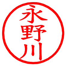 [朱肉の色]を選び、入力窓に“永野川”と入力して[生成]ボタンを押すと、印影が更新され、リンクから電子印鑑(デジタル印影)がダウンロードできます。 電子印鑑「永野川」の作り方文字表示が変なときや、文字バランスが悪いときは[字形切替]のチェックボックスでON/OFFを切り替え[生成]しなおしてください。 生成される画像は通常の印影「永野川.png」と、にじみを表現した少し太めの印影「永野川B.png」の背面透過PNG形式2種と、鮮明なPDF形式の印影「永野川.pdf」の計3種類です。 朱肉の微妙な色の違いを7色で表現しました。デフォルト(左端)は、JISが定めた朱肉の色のマンセル値(7.5R 5/14)をRGB値(217,66,54)に変換したものになっています。 「電子透かし」にチェックを入れて[生成]ボタンを押すと、タイムスタンプを電子透かしとして埋め込んだセキュアな電子印鑑が作れます。詳細は別ページの「タイムスタンプと電子透かし」でご覧ください。 永野川さんの日付印が作れます。「日付スタンプメーカー」は、社内向けの書類に利用されることの多い日付印(データ印)が無料で作れるWebアプリケーションです。中段に日付が入り、上段と下段は、ともに8文字まで文字が入ります。 ![]() 古代文字で落款印が作れます。「落款スタンプメーカー」で作品を引き立たせる落款印が作れます。