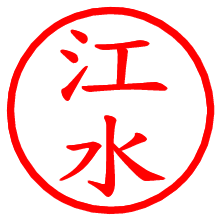 [朱肉の色]を選び、入力窓に“江水”と入力して[生成]ボタンを押すと、印影が更新され、リンクから電子印鑑(デジタル印影)がダウンロードできます。 電子印鑑「江水」の作り方文字表示が変なときや、文字バランスが悪いときは[字形切替]のチェックボックスでON/OFFを切り替え[生成]しなおしてください。 生成される画像は通常の印影「江水.png」と、にじみを表現した少し太めの印影「江水B.png」の背面透過PNG形式2種と、鮮明なPDF形式の印影「江水.pdf」の計3種類です。 朱肉の微妙な色の違いを7色で表現しました。デフォルト(左端)は、JISが定めた朱肉の色のマンセル値(7.5R 5/14)をRGB値(217,66,54)に変換したものになっています。 「電子透かし」にチェックを入れて[生成]ボタンを押すと、タイムスタンプを透かしとして埋め込んだセキュアな電子印鑑が作れます。詳細は別ページの「電子透かしとタイムスタンプ」でご覧ください。  江水さんの日付印が作れます。「日付スタンプメーカー」は、社内向けの書類に利用されることの多い日付印(データ印)が無料で作れるWebアプリケーションです。 中段に日付が入り、上段と下段は、ともに8文字まで文字が入ります。   古代文字で落款印が作れます。「落款スタンプメーカー」で作品を引き立たせる落款印が作れます。  なりきり書道 「落款スタンプメーカー」で作成した落款印の全体的な配置バランスの確認にご利用いただけます。デザインのワンポイントやラインスタンプ等にもお使いください。  遊び心ある江水さんの角印はいかが? 絵文字が使えてLINEスタンプや年賀状にも使える消しゴムはんこ風の電子印鑑が作れます。  画像スタンプメーカーは、猫派の方はもちろん。犬派の方にもおすすめしたいペットなどのお気に入りの画像とかわいいタッチの文字が入るほっこりしたスタンプです。 マイスタンプメーカーとは法的な電子印鑑にはあたりませんので三文判的な位置付けでご利用ください。 | ||