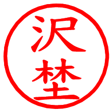 [朱肉の色]を選び、入力窓に“沢埜”と入力して[生成]ボタンを押すと、印影が更新され、リンクから電子印鑑(デジタル印影)がダウンロードできます。 電子印鑑「沢埜」の作り方文字表示が変なときや、文字バランスが悪いときは[字形切替]のチェックボックスでON/OFFを切り替え[生成]しなおしてください。 生成される画像は通常の印影「沢埜.png」と、にじみを表現した少し太めの印影「沢埜B.png」の背面透過PNG形式2種と、鮮明なPDF形式の印影「沢埜.pdf」の計3種類です。 朱肉の微妙な色の違いを7色で表現しました。デフォルト(左端)は、JISが定めた朱肉の色のマンセル値(7.5R 5/14)をRGB値(217,66,54)に変換したものになっています。 「電子透かし」にチェックを入れて[生成]ボタンを押すと、タイムスタンプを透かしとして埋め込んだセキュアな電子印鑑が作れます。詳細は別ページの「電子透かしとタイムスタンプ」でご覧ください。 沢埜さんの日付印が作れます。「日付スタンプメーカー」は、社内向けの書類に利用されることの多い日付印(データ印)が無料で作れるWebアプリケーションです。中段に日付が入り、上段と下段は、ともに8文字まで文字が入ります。 ![]() 古代文字で落款印が作れます。「落款スタンプメーカー」で作品を引き立たせる落款印が作れます。
