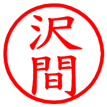 [朱肉の色]を選び、入力窓に“沢間”と入力して[生成]ボタンを押すと、印影が更新され、リンクから電子印鑑(デジタル印影)がダウンロードできます。 電子印鑑「沢間」の作り方文字表示が変なときや、文字バランスが悪いときは[字形切替]のチェックボックスでON/OFFを切り替え[生成]しなおしてください。 生成される画像は通常の印影「沢間.png」と、にじみを表現した少し太めの印影「沢間B.png」の背面透過PNG形式2種と、鮮明なPDF形式の印影「沢間.pdf」の計3種類です。 朱肉の微妙な色の違いを7色で表現しました。デフォルト(左端)は、JISが定めた朱肉の色のマンセル値(7.5R 5/14)をRGB値(217,66,54)に変換したものになっています。 「電子透かし」にチェックを入れて[生成]ボタンを押すと、タイムスタンプを透かしとして埋め込んだセキュアな電子印鑑が作れます。詳細は別ページの「電子透かしとタイムスタンプ」でご覧ください。  沢間さんの日付印が作れます。「日付スタンプメーカー」は、社内向けの書類に利用されることの多い日付印(データ印)が無料で作れるWebアプリケーションです。中段に日付が入り、上段と下段は、ともに8文字まで文字が入ります。 ![]()  古代文字で落款印が作れます。「落款スタンプメーカー」で作品を引き立たせる落款印が作れます。