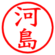 [朱肉の色]を選び、入力窓に“河島”と入力して[生成]ボタンを押すと、印影が更新され、リンクから電子印鑑(デジタル印影)がダウンロードできます。 電子印鑑「河島」の作り方文字表示が変なときや、文字バランスが悪いときは[字形切替]のチェックボックスでON/OFFを切り替え[生成]しなおしてください。 生成される画像は通常の印影「河島.png」と、にじみを表現した少し太めの印影「河島B.png」の背面透過PNG形式2種と、鮮明なPDF形式の印影「河島.pdf」の計3種類です。 朱肉の微妙な色の違いを7色で表現しました。デフォルト(左端)は、JISが定めた朱肉の色のマンセル値(7.5R 5/14)をRGB値(217,66,54)に変換したものになっています。 「電子透かし」にチェックを入れて[生成]ボタンを押すと、タイムスタンプを透かしとして埋め込んだセキュアな電子印鑑が作れます。詳細は別ページの「電子透かしとタイムスタンプ」でご覧ください。 河島さんの日付印が作れます。「日付スタンプメーカー」は、社内向けの書類に利用されることの多い日付印(データ印)が無料で作れるWebアプリケーションです。中段に日付が入り、上段と下段は、ともに8文字まで文字が入ります。 ![]() 古代文字で落款印が作れます。「落款スタンプメーカー」で作品を引き立たせる落款印が作れます。