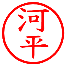 [朱肉の色]を選び、入力窓に“河平”と入力して[生成]ボタンを押すと、印影が更新され、リンクから電子印鑑(デジタル印影)がダウンロードできます。 電子印鑑「河平」の作り方文字表示が変なときや、文字バランスが悪いときは[字形切替]のチェックボックスでON/OFFを切り替え[生成]しなおしてください。 生成される画像は通常の印影「河平.png」と、にじみを表現した少し太めの印影「河平B.png」の背面透過PNG形式2種と、鮮明なPDF形式の印影「河平.pdf」の計3種類です。 朱肉の微妙な色の違いを7色で表現しました。デフォルト(左端)は、JISが定めた朱肉の色のマンセル値(7.5R 5/14)をRGB値(217,66,54)に変換したものになっています。 「電子透かし」にチェックを入れて[生成]ボタンを押すと、タイムスタンプを透かしとして埋め込んだセキュアな電子印鑑が作れます。詳細は別ページの「電子透かしとタイムスタンプ」でご覧ください。 河平さんの日付印が作れます。「日付スタンプメーカー」は、社内向けの書類に利用されることの多い日付印(データ印)が無料で作れるWebアプリケーションです。中段に日付が入り、上段と下段は、ともに8文字まで文字が入ります。 ![]() 古代文字で落款印が作れます。「落款スタンプメーカー」で作品を引き立たせる落款印が作れます。