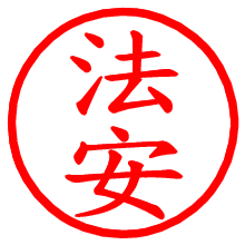 [朱肉の色]を選び、入力窓に“法安”と入力して[生成]ボタンを押すと、印影が更新され、リンクから電子印鑑(デジタル印影)がダウンロードできます。 電子印鑑「法安」の作り方文字表示が変なときや、文字バランスが悪いときは[字形切替]のチェックボックスでON/OFFを切り替え[生成]しなおしてください。 生成される画像は通常の印影「法安.png」と、にじみを表現した少し太めの印影「法安B.png」の背面透過PNG形式2種と、鮮明なPDF形式の印影「法安.pdf」の計3種類です。 朱肉の微妙な色の違いを7色で表現しました。デフォルト(左端)は、JISが定めた朱肉の色のマンセル値(7.5R 5/14)をRGB値(217,66,54)に変換したものになっています。 「電子透かし」にチェックを入れて[生成]ボタンを押すと、タイムスタンプを電子透かしとして埋め込んだセキュアな電子印鑑が作れます。詳細は別ページの「タイムスタンプと電子透かし」でご覧ください。 法安さんの日付印が作れます。「日付スタンプメーカー」は、社内向けの書類に利用されることの多い日付印(データ印)が無料で作れるWebアプリケーションです。中段に日付が入り、上段と下段は、ともに8文字まで文字が入ります。 ![]() 古代文字で落款印が作れます。「落款スタンプメーカー」で作品を引き立たせる落款印が作れます。