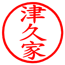 [朱肉の色]を選び、入力窓に“津久家”と入力して[生成]ボタンを押すと、印影が更新され、リンクから電子印鑑(デジタル印影)がダウンロードできます。 電子印鑑「津久家」の作り方文字表示が変なときや、文字バランスが悪いときは[字形切替]のチェックボックスでON/OFFを切り替え[生成]しなおしてください。 生成される画像は通常の印影「津久家.png」と、にじみを表現した少し太めの印影「津久家B.png」の背面透過PNG形式2種と、鮮明なPDF形式の印影「津久家.pdf」の計3種類です。 朱肉の微妙な色の違いを7色で表現しました。デフォルト(左端)は、JISが定めた朱肉の色のマンセル値(7.5R 5/14)をRGB値(217,66,54)に変換したものになっています。 「電子透かし」にチェックを入れて[生成]ボタンを押すと、タイムスタンプを電子透かしとして埋め込んだセキュアな電子印鑑が作れます。詳細は別ページの「タイムスタンプと電子透かし」でご覧ください。 津久家さんの日付印が作れます。「日付スタンプメーカー」は、社内向けの書類に利用されることの多い日付印(データ印)が無料で作れるWebアプリケーションです。中段に日付が入り、上段と下段は、ともに8文字まで文字が入ります。 ![]() 古代文字で落款印が作れます。「落款スタンプメーカー」で作品を引き立たせる落款印が作れます。