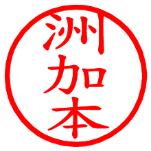 [朱肉の色]を選び、入力窓に“洲加本”と入力して[生成]ボタンを押すと、印影が更新され、リンクから電子印鑑(デジタル印影)がダウンロードできます。 電子印鑑「洲加本」の作り方文字表示が変なときや、文字バランスが悪いときは[字形切替]のチェックボックスでON/OFFを切り替え[生成]しなおしてください。 生成される画像は通常の印影「洲加本.png」と、にじみを表現した少し太めの印影「洲加本B.png」の背面透過PNG形式2種と、鮮明なPDF形式の印影「洲加本.pdf」の計3種類です。 朱肉の微妙な色の違いを7色で表現しました。デフォルト(左端)は、JISが定めた朱肉の色のマンセル値(7.5R 5/14)をRGB値(217,66,54)に変換したものになっています。 「電子透かし」にチェックを入れて[生成]ボタンを押すと、タイムスタンプを電子透かしとして埋め込んだセキュアな電子印鑑が作れます。詳細は別ページの「タイムスタンプと電子透かし」でご覧ください。 洲加本さんの日付印が作れます。「日付スタンプメーカー」は、社内向けの書類に利用されることの多い日付印(データ印)が無料で作れるWebアプリケーションです。中段に日付が入り、上段と下段は、ともに8文字まで文字が入ります。 ![]() 古代文字で落款印が作れます。「落款スタンプメーカー」で作品を引き立たせる落款印が作れます。