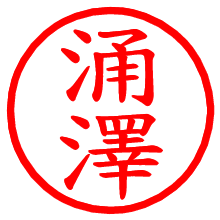 [朱肉の色]を選び、入力窓に“涌澤”と入力して[生成]ボタンを押すと、印影が更新され、リンクから電子印鑑(デジタル印影)がダウンロードできます。 電子印鑑「涌澤」の作り方文字表示が変なときや、文字バランスが悪いときは[字形切替]のチェックボックスでON/OFFを切り替え[生成]しなおしてください。 生成される画像は通常の印影「涌澤.png」と、にじみを表現した少し太めの印影「涌澤B.png」の背面透過PNG形式2種と、鮮明なPDF形式の印影「涌澤.pdf」の計3種類です。 朱肉の微妙な色の違いを7色で表現しました。デフォルト(左端)は、JISが定めた朱肉の色のマンセル値(7.5R 5/14)をRGB値(217,66,54)に変換したものになっています。 「電子透かし」にチェックを入れて[生成]ボタンを押すと、タイムスタンプを電子透かしとして埋め込んだセキュアな電子印鑑が作れます。詳細は別ページの「タイムスタンプと電子透かし」でご覧ください。 涌澤さんの日付印が作れます。「日付スタンプメーカー」は、社内向けの書類に利用されることの多い日付印(データ印)が無料で作れるWebアプリケーションです。中段に日付が入り、上段と下段は、ともに8文字まで文字が入ります。 ![]() 古代文字で落款印が作れます。「落款スタンプメーカー」で作品を引き立たせる落款印が作れます。