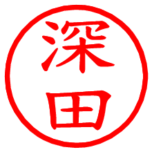 [朱肉の色]を選び、入力窓に“深田”と入力して[生成]ボタンを押すと、印影が更新され、リンクから電子印鑑(デジタル印影)がダウンロードできます。 電子印鑑「深田」の作り方文字表示が変なときや、文字バランスが悪いときは[字形切替]のチェックボックスでON/OFFを切り替え[生成]しなおしてください。 生成される画像は通常の印影「深田.png」と、にじみを表現した少し太めの印影「深田B.png」の背面透過PNG形式2種と、鮮明なPDF形式の印影「深田.pdf」の計3種類です。 朱肉の微妙な色の違いを7色で表現しました。デフォルト(左端)は、JISが定めた朱肉の色のマンセル値(7.5R 5/14)をRGB値(217,66,54)に変換したものになっています。 「電子透かし」にチェックを入れて[生成]ボタンを押すと、タイムスタンプを透かしとして埋め込んだセキュアな電子印鑑が作れます。詳細は別ページの「電子透かしとタイムスタンプ」でご覧ください。 深田さんの日付印が作れます。「日付スタンプメーカー」は、社内向けの書類に利用されることの多い日付印(データ印)が無料で作れるWebアプリケーションです。中段に日付が入り、上段と下段は、ともに8文字まで文字が入ります。 ![]() 古代文字で落款印が作れます。「落款スタンプメーカー」で作品を引き立たせる落款印が作れます。