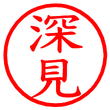 [朱肉の色]を選び、入力窓に“深見”と入力して[生成]ボタンを押すと、印影が更新され、リンクから電子印鑑(デジタル印影)がダウンロードできます。 電子印鑑「深見」の作り方文字表示が変なときや、文字バランスが悪いときは[字形切替]のチェックボックスでON/OFFを切り替え[生成]しなおしてください。 生成される画像は通常の印影「深見.png」と、にじみを表現した少し太めの印影「深見B.png」の背面透過PNG形式2種と、鮮明なPDF形式の印影「深見.pdf」の計3種類です。 朱肉の微妙な色の違いを7色で表現しました。デフォルト(左端)は、JISが定めた朱肉の色のマンセル値(7.5R 5/14)をRGB値(217,66,54)に変換したものになっています。 「電子透かし」にチェックを入れて[生成]ボタンを押すと、タイムスタンプを透かしとして埋め込んだセキュアな電子印鑑が作れます。詳細は別ページの「電子透かしとタイムスタンプ」でご覧ください。 深見さんの日付印が作れます。「日付スタンプメーカー」は、社内向けの書類に利用されることの多い日付印(データ印)が無料で作れるWebアプリケーションです。中段に日付が入り、上段と下段は、ともに8文字まで文字が入ります。 ![]() 古代文字で落款印が作れます。「落款スタンプメーカー」で作品を引き立たせる落款印が作れます。