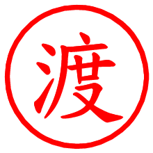 [朱肉の色]を選び、入力窓に“渡”と入力して[生成]ボタンを押すと、印影が更新され、リンクから電子印鑑(デジタル印影)がダウンロードできます。 電子印鑑「渡」の作り方文字表示が変なときや、文字バランスが悪いときは[字形切替]のチェックボックスでON/OFFを切り替え[生成]しなおしてください。 生成される画像は通常の印影「渡.png」と、にじみを表現した少し太めの印影「渡B.png」の背面透過PNG形式2種と、鮮明なPDF形式の印影「渡.pdf」の計3種類です。 朱肉の微妙な色の違いを7色で表現しました。デフォルト(左端)は、JISが定めた朱肉の色のマンセル値(7.5R 5/14)をRGB値(217,66,54)に変換したものになっています。 「電子透かし」にチェックを入れて[生成]ボタンを押すと、タイムスタンプを透かしとして埋め込んだセキュアな電子印鑑が作れます。詳細は別ページの「電子透かしとタイムスタンプ」でご覧ください。 渡さんの日付印が作れます。「日付スタンプメーカー」は、社内向けの書類に利用されることの多い日付印(データ印)が無料で作れるWebアプリケーションです。中段に日付が入り、上段と下段は、ともに8文字まで文字が入ります。 ![]() 古代文字で落款印が作れます。「落款スタンプメーカー」で作品を引き立たせる落款印が作れます。