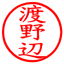 [朱肉の色]を選び、入力窓に“渡野辺”と入力して[生成]ボタンを押すと、印影が更新され、リンクから電子印鑑(デジタル印影)がダウンロードできます。 電子印鑑「渡野辺」の作り方文字表示が変なときや、文字バランスが悪いときは[字形切替]のチェックボックスでON/OFFを切り替え[生成]しなおしてください。 生成される画像は通常の印影「渡野辺.png」と、にじみを表現した少し太めの印影「渡野辺B.png」の背面透過PNG形式2種と、鮮明なPDF形式の印影「渡野辺.pdf」の計3種類です。 朱肉の微妙な色の違いを7色で表現しました。デフォルト(左端)は、JISが定めた朱肉の色のマンセル値(7.5R 5/14)をRGB値(217,66,54)に変換したものになっています。 「電子透かし」にチェックを入れて[生成]ボタンを押すと、タイムスタンプを透かしとして埋め込んだセキュアな電子印鑑が作れます。詳細は別ページの「電子透かしとタイムスタンプ」でご覧ください。 渡野辺さんの日付印が作れます。「日付スタンプメーカー」は、社内向けの書類に利用されることの多い日付印(データ印)が無料で作れるWebアプリケーションです。中段に日付が入り、上段と下段は、ともに8文字まで文字が入ります。 ![]() 古代文字で落款印が作れます。「落款スタンプメーカー」で作品を引き立たせる落款印が作れます。