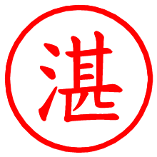[朱肉の色]を選び、入力窓に“湛”と入力して[生成]ボタンを押すと、印影が更新され、リンクから電子印鑑(デジタル印影)がダウンロードできます。 電子印鑑「湛」の作り方文字表示が変なときや、文字バランスが悪いときは[字形切替]のチェックボックスでON/OFFを切り替え[生成]しなおしてください。 生成される画像は通常の印影「湛.png」と、にじみを表現した少し太めの印影「湛B.png」の背面透過PNG形式2種と、鮮明なPDF形式の印影「湛.pdf」の計3種類です。 朱肉の微妙な色の違いを7色で表現しました。デフォルト(左端)は、JISが定めた朱肉の色のマンセル値(7.5R 5/14)をRGB値(217,66,54)に変換したものになっています。 「電子透かし」にチェックを入れて[生成]ボタンを押すと、タイムスタンプを電子透かしとして埋め込んだセキュアな電子印鑑が作れます。詳細は別ページの「タイムスタンプと電子透かし」でご覧ください。 湛さんの日付印が作れます。「日付スタンプメーカー」は、社内向けの書類に利用されることの多い日付印(データ印)が無料で作れるWebアプリケーションです。中段に日付が入り、上段と下段は、ともに8文字まで文字が入ります。 ![]() 古代文字で落款印が作れます。「落款スタンプメーカー」で作品を引き立たせる落款印が作れます。
